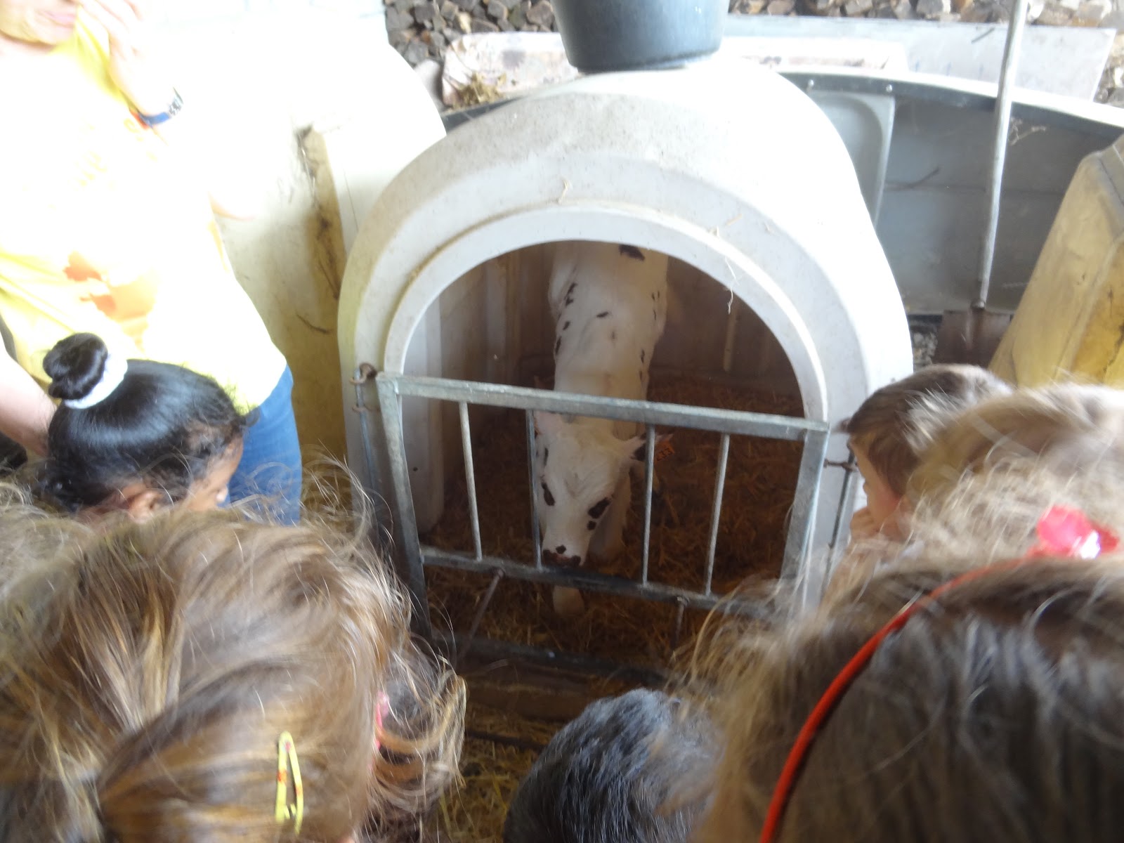 2. La nurserie : nous avons observé le plus jeune veau de la ferme (il n'avait qu'une semaine !)....