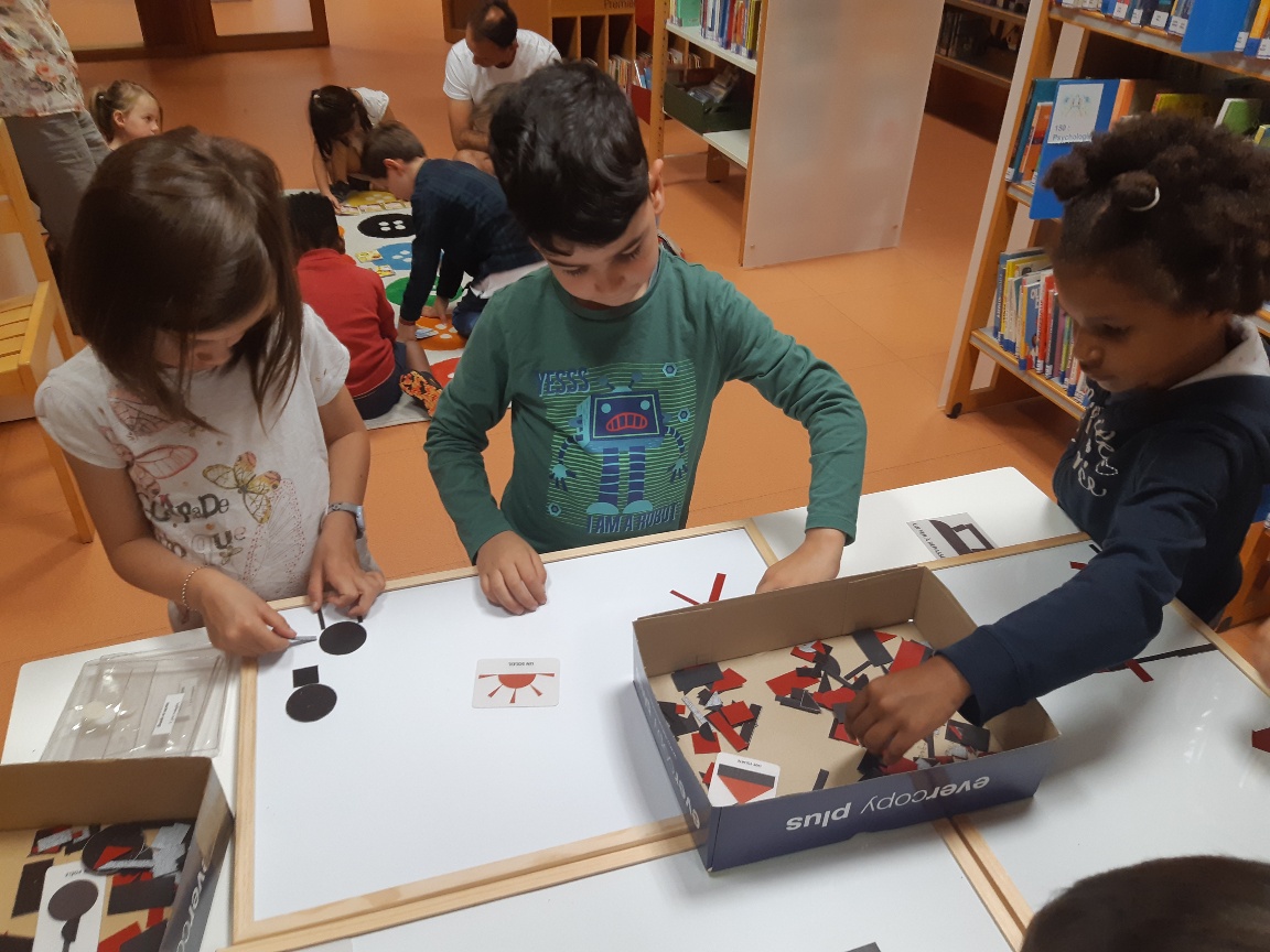 Hier, vendredi, la classe de GS est allée à la Médiathèque Jacques Demy pour une animation autour des albums du Père Castor.